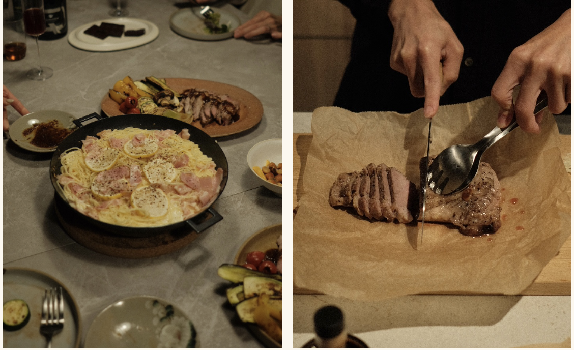 自宅に友人を招いてホームパーティをすることや、アウトドアシーンでキャンプ飯を作るのも好きです。