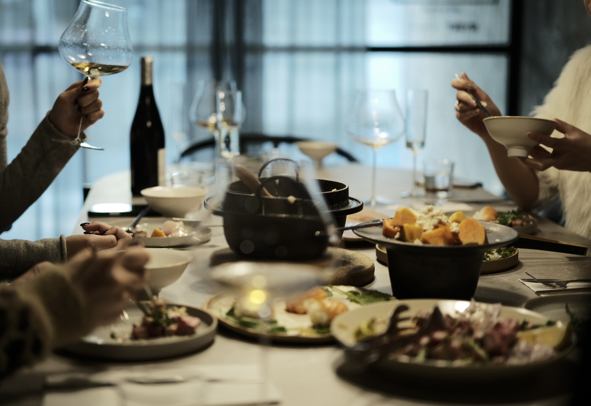 和食と洋食をミックスした、華やかさのあるパーティメニューを作りました。ワインにも合うことを意識して、ジャンルにとらわれず組み合わせています。