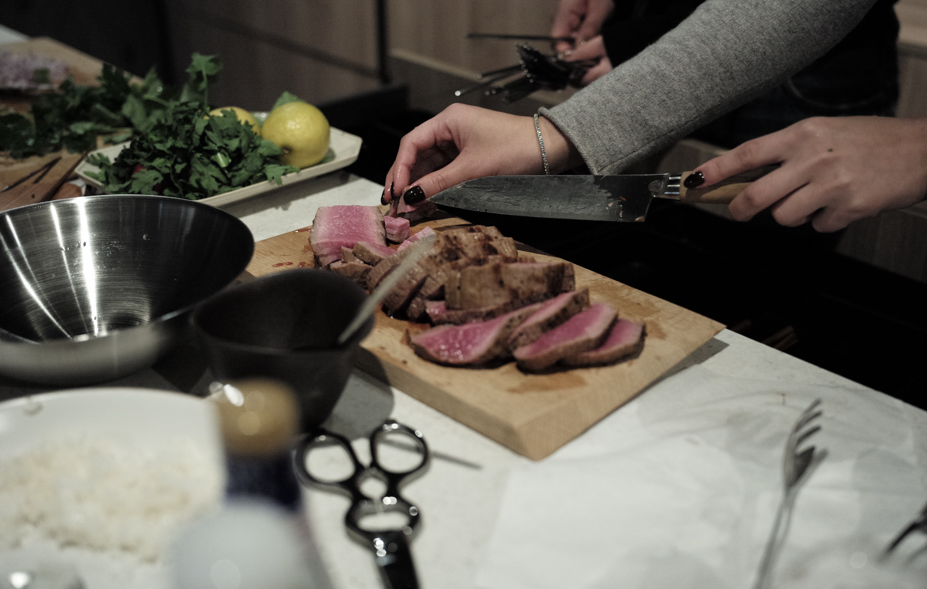 フルーツを使った白和えや、牛肉と薬味のタルタル、炊き込みご飯など、キッチンをフル稼働させてたくさんの料理を用意しました。